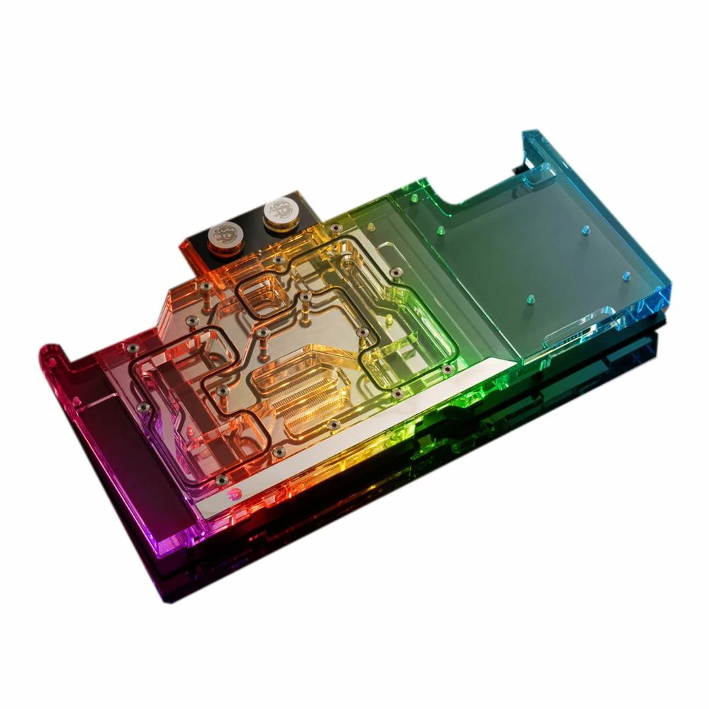 The Bitspower Classic VGA Water Block for EVGA GeForce RTX 3090 FTW3 series, designed for the EVGA GeForce RTX 3090 FTW3 series graphic cards, has been specifically engineered to provide the best temperature control while also keeping the aesthetic elegance that Bitspower is known for. Covering the full length of the card, the water block is layered with a nickel and chromium plated copper base plate that is meticulously carved to allocate the most contact over the GPU and VRM area. Moreover, the water block is covered by an acrylic top layer equipped with a Bitspower Digital RGB LED strip that is sure to make your system look amazing.