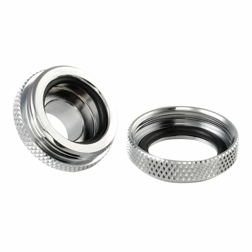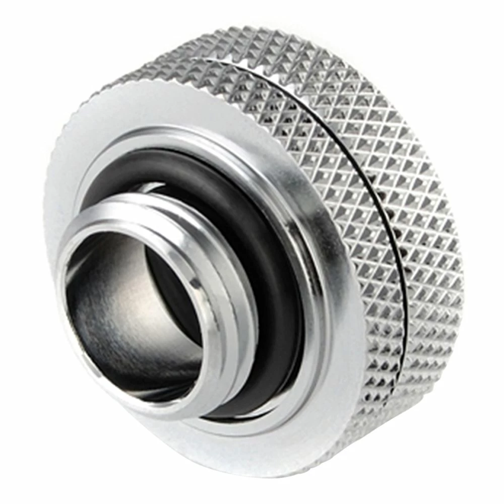 Compression fitting for use with water cooling products and comes with a silver finish.