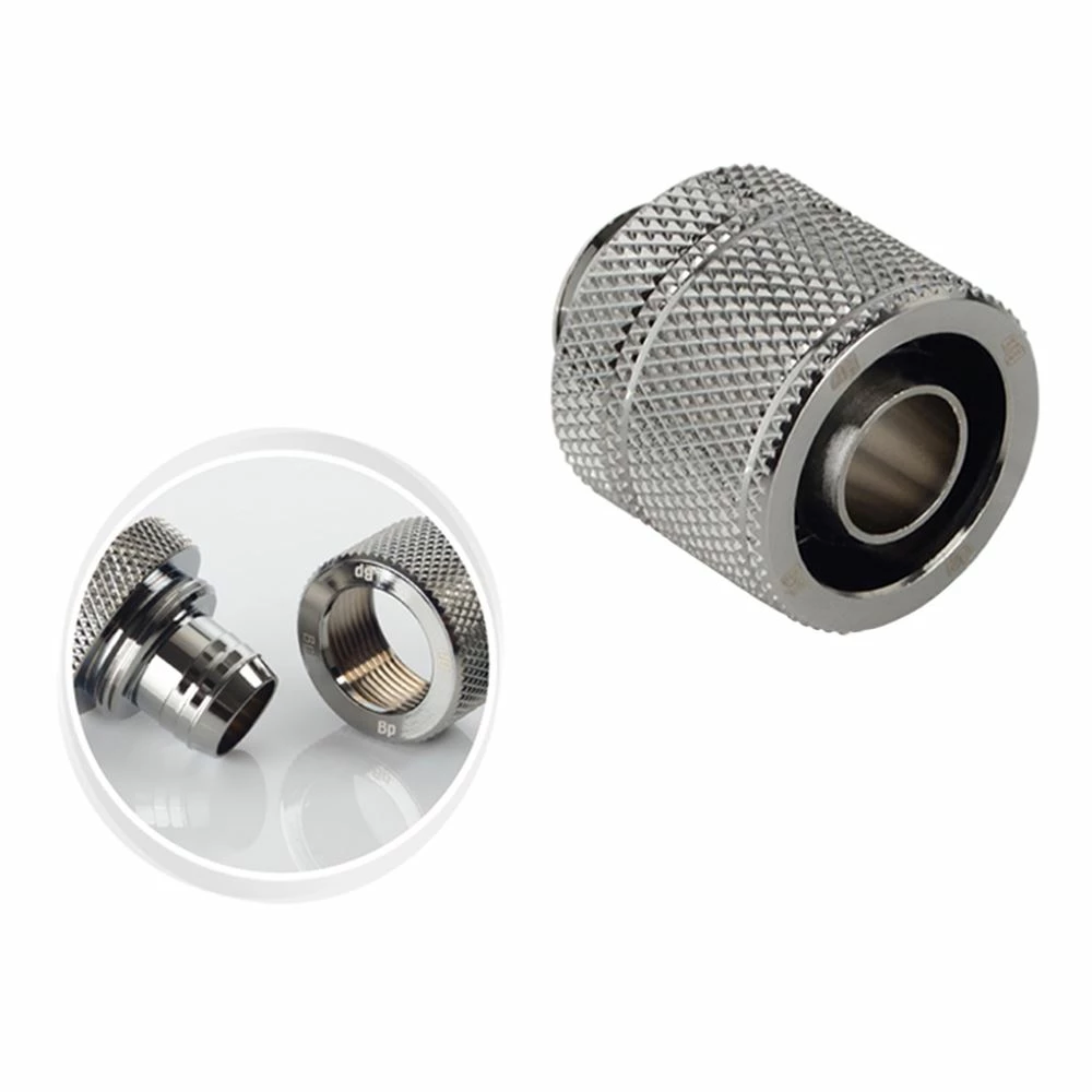 Compression fitting for use with water cooling products and comes with a matte black finish. The 1/4″ British standard thread with rubber o-ring allows it to screw securely into water cooling components with a tight leak proof seal.