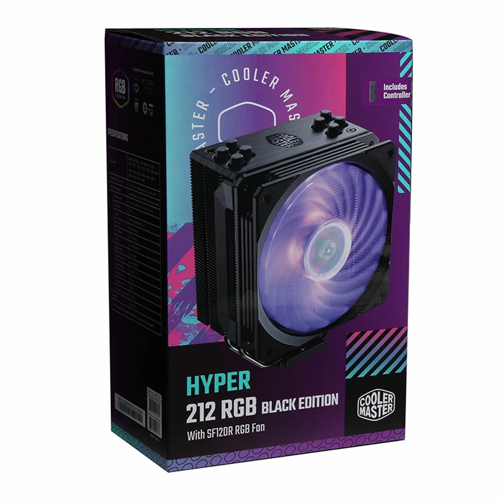Cooler Master Hyper 212 RGB Black Edition CPU Air Cooler SF120R RGB Fan; Anodized Gun-Metal Black; Brushed Nickel Fins; 4 Copper Direct Contact Heat Pipes