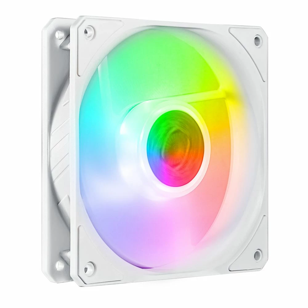SickleFlow 120 ARGB White Edition, a new series of the CoolerMaster Fan family, provides a specific air cooling solution ideal for CPU coolers and chassis in-take fans. Optimized blade design with updated curve that improves air flow and air pressure. Enhanced frame structure, reducing turbulent flow and noise and increasing overall work efficiency. Sealed and secured fan bearing, preventing dust and lubricating oil leakage while increasing the fans operation stability and life span.