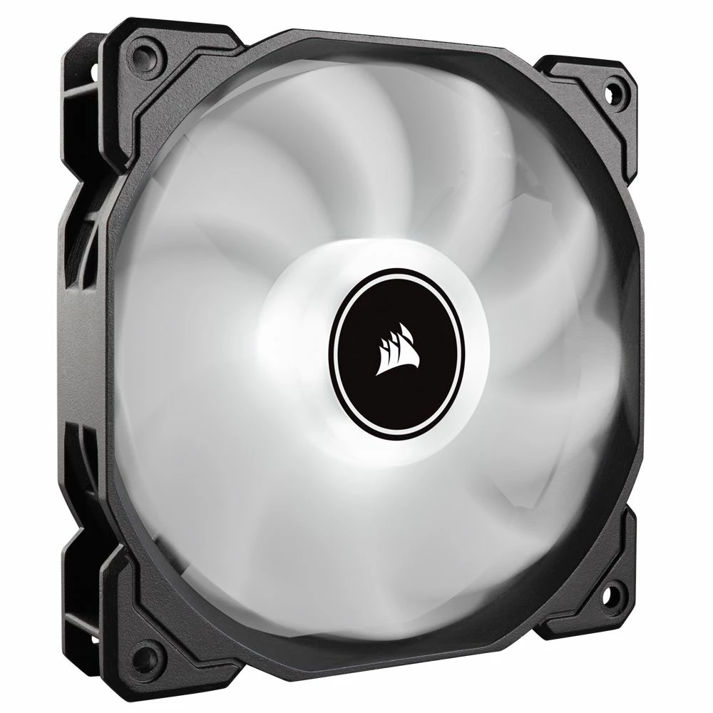 CORSAIR AF140 LED cooling fans combine bright LED lighting, strong static pressure, low noise and high airflow to deliver great cooling performance anywhere in your PC. Whether its as an intake or exhaust case fan, or mounted to a CORSAIR Hydro Series liquid CPU coolers radiator, AF140 LED fans provide up to 62 CFM of airflow where your system needs it most. Available in a choice of red, white or blue, AF140 LEDs four hub-mounted LEDs radiate vivid and diffused lighting across a specially designed opaque fan blade, illuminating your system with a brilliant burst of color.