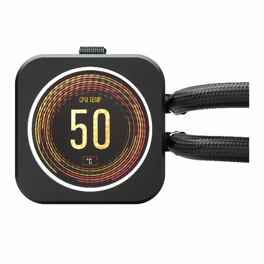 The CORSAIR iCUE H150i ELITE LCD Display Liquid CPU Cooler delivers powerful, customized cooling for your CPU, with a personalized LCD screen that displays GIFs, images, and system information. Three cutting-edge CORSAIR ML120 RGB ELITE PWM fans controllable between 450 – 2,000 RPM and 48 total RGB LEDs add extreme low-noise cooling performance and vibrant lighting effects. Connect to the included CORSAIR iCUE COMMANDER CORE and powerful CORSAIR iCUE software to orchestrate synchronized RGB lighting, adjust fan speeds, and enable Zero RPM mode on up to six fans. iCUE controls LCD screen customization, enabling you to choose between a diverse library of graphical themes. With a 360mm radiator, thermally optimized copper cold plate, and easy installation on the latest CPU brackets, the H150i ELITE LCD puts your CPU cooling on full display.