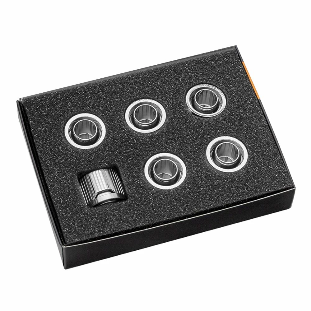 EK-Quantum Torque 6-Pack STC 12/16 is a fitting multipack containing six EK-Torque STC fittings. These are EK’s premium 12/16mm (ID/OD) soft-tube compression fittings designed for use with various flexible soft tubing types such as PVC, EPDM, Norprene, silicone or any other type of compatible flexible tube. With a non-intrusive, yet striking look, and with NO added branding at all. They can be complemented by interchangeable aesthetic color rings, and are an ideal choice for anyone and a perfect match with EK-Quantum series products.