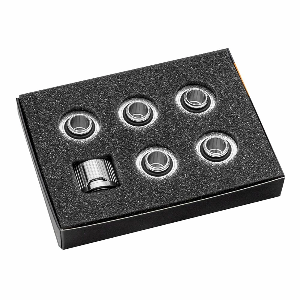 EK-Quantum Torque 6-Pack STC 10/16 is a fitting multipack containing six EK-Torque STC fittings. These are EK’s premium 10/16mm (ID/OD) soft-tube compression fittings designed for use with various flexible soft tubing types such as PVC, EPDM, Norprene, silicone or any other type of compatible flexible tube. With a non-intrusive, yet striking look, and with NO added branding at all. They can be complemented by interchangeable aesthetic color rings, and are an ideal choice for anyone and a perfect match with EK-Quantum series products.
