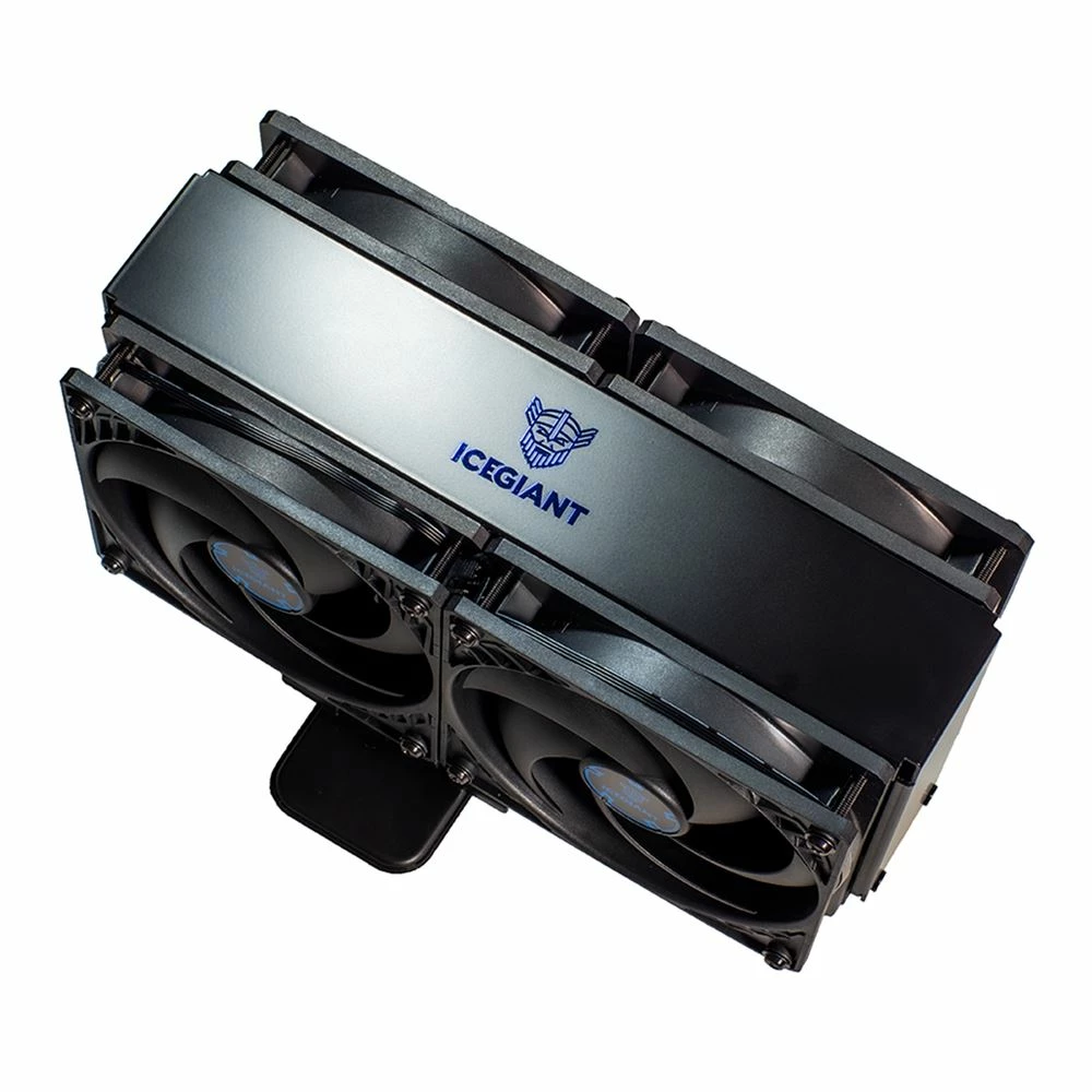 The IceGiant ProSiphon Elite! Thanks to its large contact surface, this extremely powerful CPU cooler is suitable not only for standard AMD and Intel CPUs, but also for high-performance processors such as the AMD Ryzen Threadripper. The four 120mm fans are mounted in a push-pull configuration on the heat sink.