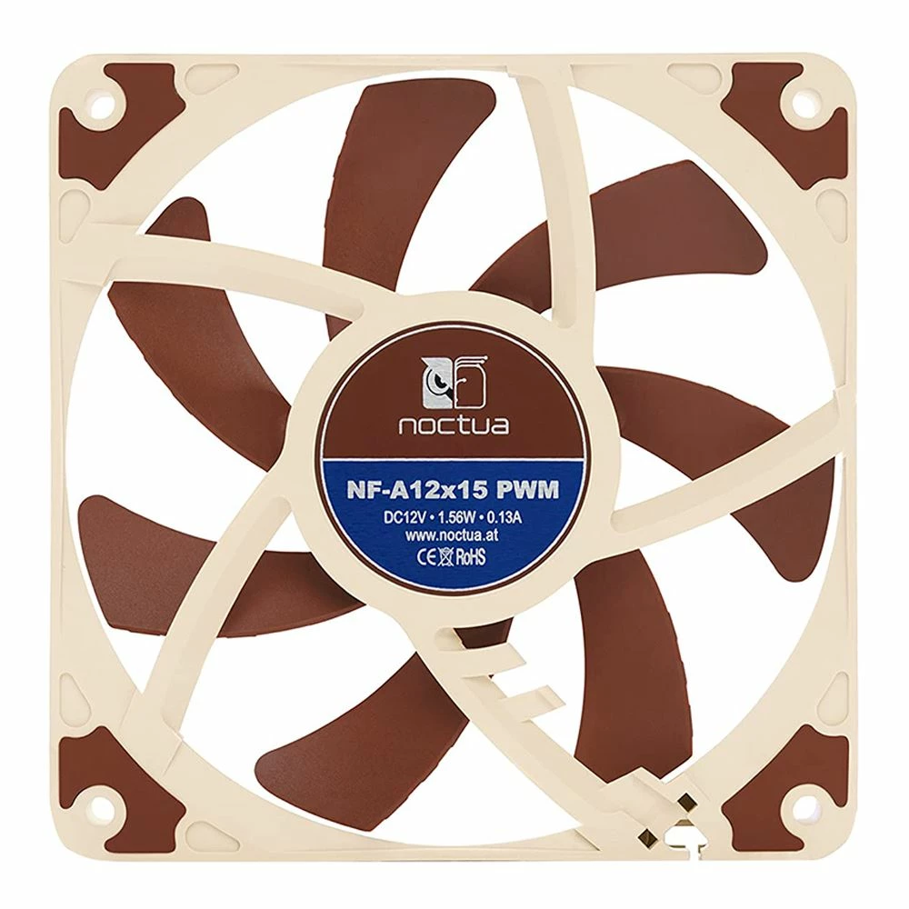 Featuring advanced aerodynamic design measures such as Flow Acceleration Channels and Noctuas AAO frame, the NF-A12x15 is a highly optimized, premium quality quiet fan in size 120x15mm. Its 15mm slim design makes the NF-A12x15 ideal for space-restricted applications such as low-profile CPU coolers or HTPC cases. The PWM version sports Noctuas custom-designed NE-FD1 IC for fully automatic speed control via 4-pin fan headers and comes with a Low-Noise Adaptor to reduce the maximum speed during PWM control from 1850 to 1400rpm. Its superb running smoothness, reference-class SSO2 bearing and Noctuas trusted premium quality make it an elite choice for the highest demands.