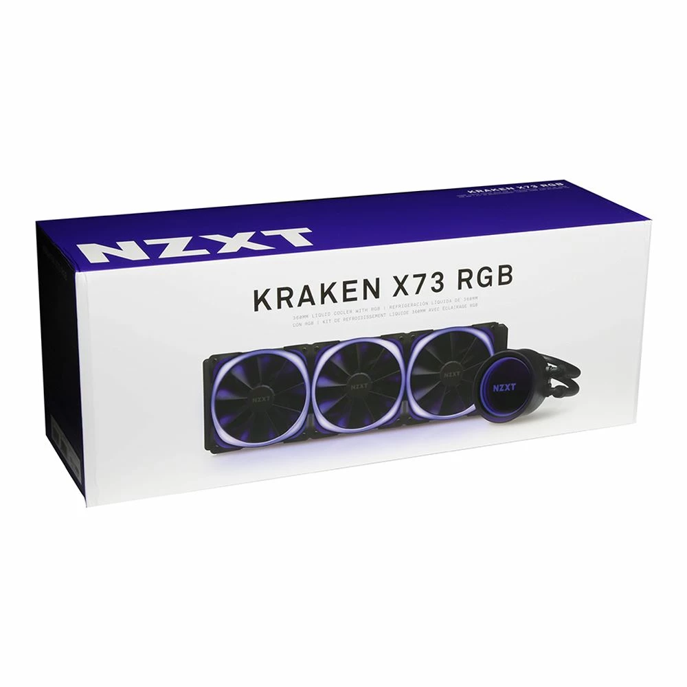 The Kraken X73 RGB is a stunning must-have for any build with the addition of NZXT RGB fans. With a re-designed cap and larger infinity mirror ring LED, the Kraken X73 RGB delivers an amazing experience in luminous liquid cooling, backed by a 6-year warranty.