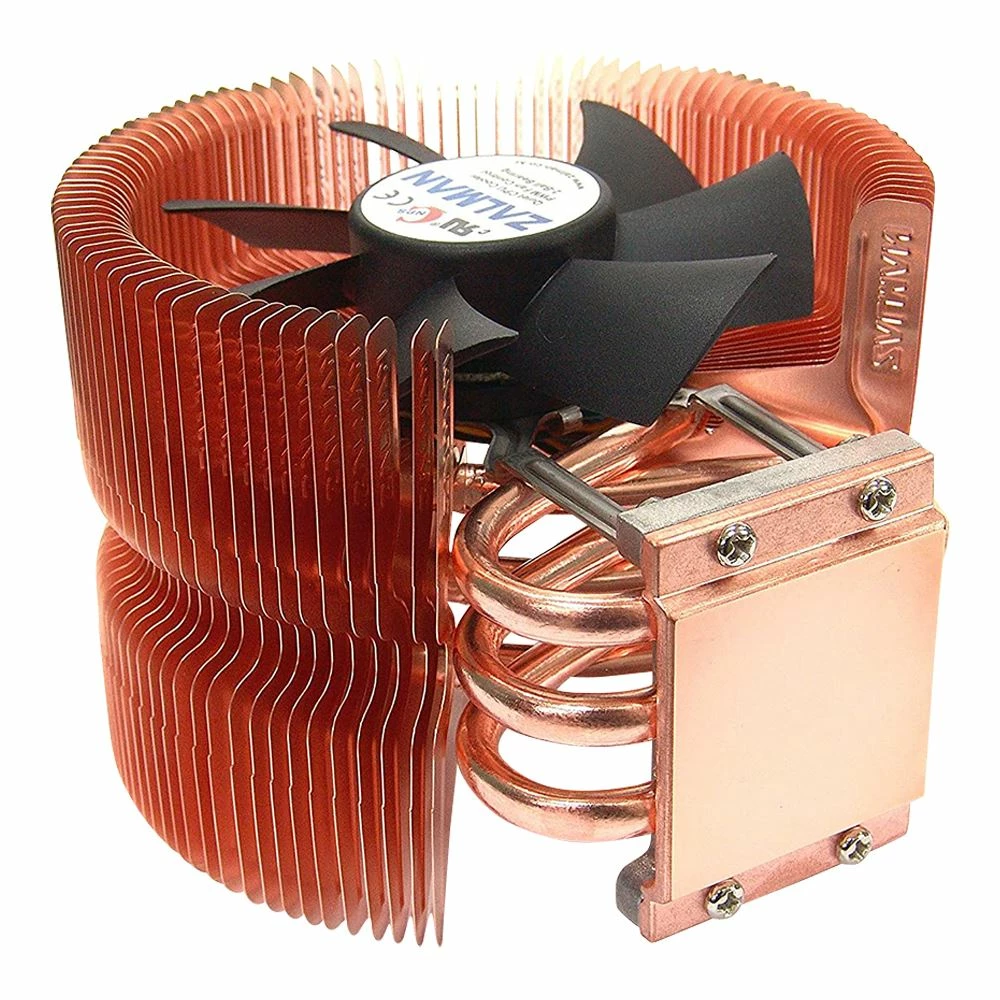 For the PC-enthusiast who wants a desktop that looks sizzling hot, yet stays remarkably cool, check out the Zalman CNP9500 AT CPU Cooler featuring a fan and heatsink! This hi-tech cooling device lends a rich, bright look to your PC with its flashy heatsink and frame, durably crafted out of pure copper. The heatsink saves space with an architecturally sound 3-pipe system that effortlessly whisks heat away with the help of the automatic fans 92mm blades and 2 ball bearings. Controlling the fan is a PWM chip, which automatically adjusts the fans speed based on CPU temperature. It operates at a stealthy 18.0 dB at 1300 RPM and quietly revs to 27.5 dB at 2650 RPM during heated PC action. Compatible with a Socket 775 platform, the Zalman Pro works flawlessly with Intels Dual Core Pentium, Pentium 4, and Celeron D systems. For ultra-cool protection and aggressive styling, the Zalman CPU Cooler is the way to go.